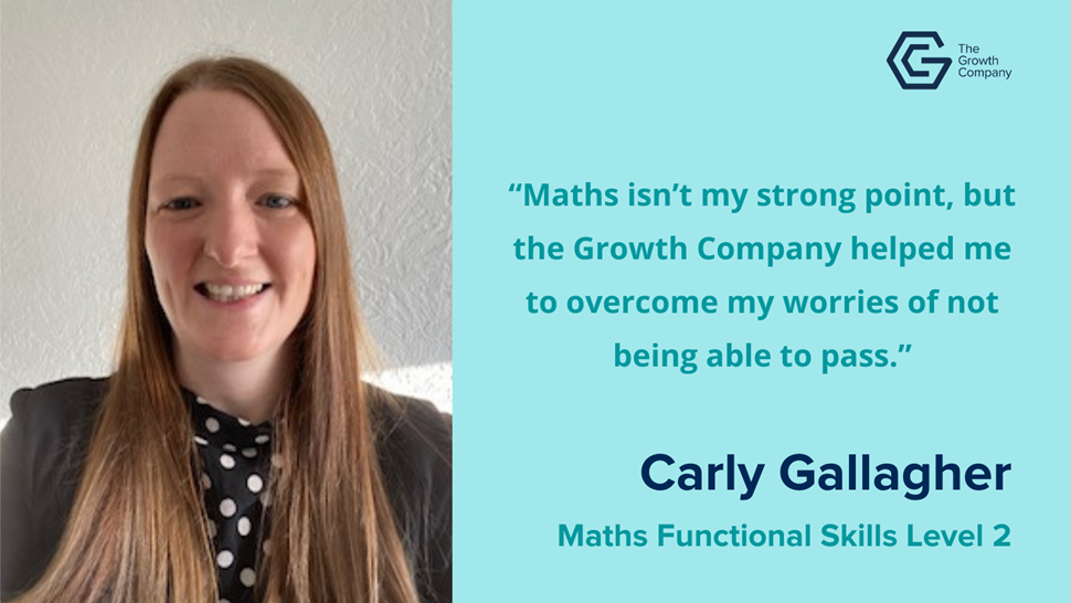 When asked Carly if she would recommend the Growth Company, she said: “Definitely, I already have, and my twin sister and a friend are currently progressing through the functional skill levels in maths.”