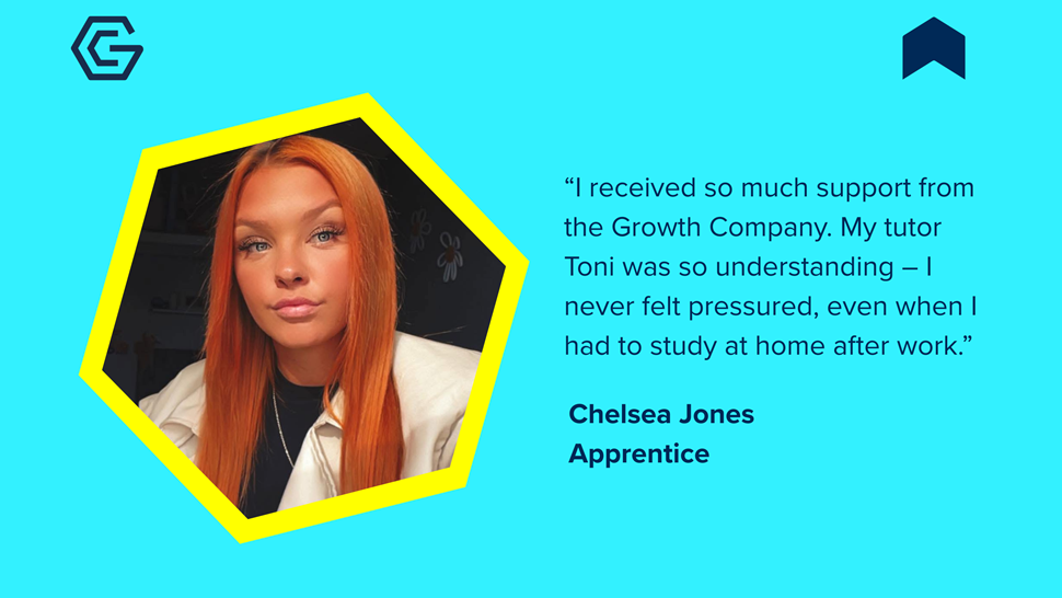 While completing her apprenticeship, Chelsea found the support from the Growth Company especially valuable.
