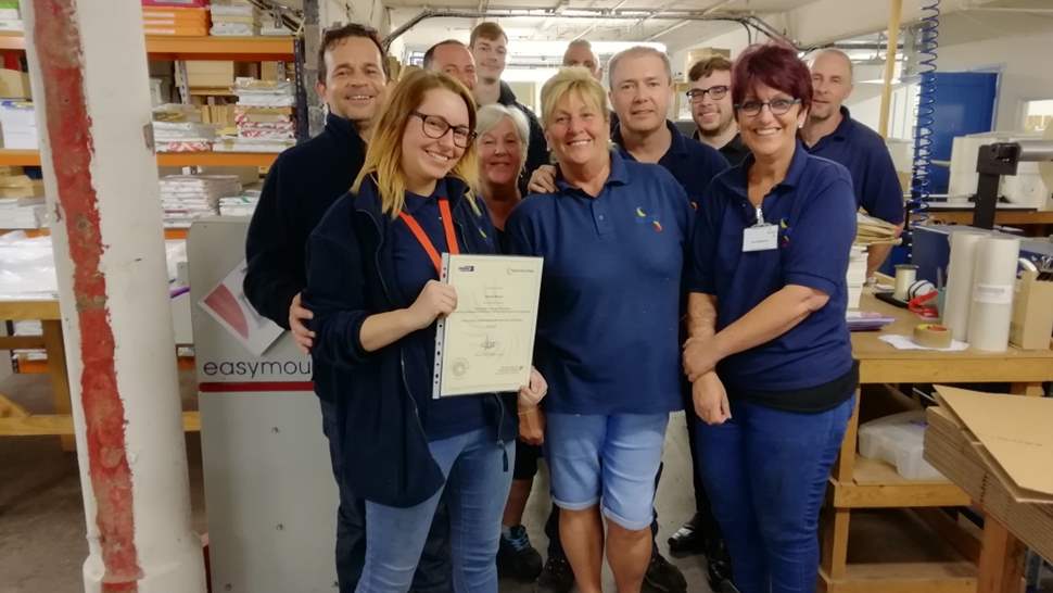 During the course of her apprenticeship, Hannah gained a wealth of practical experience and knowledge. She said: “I’ve learnt how to confidently run a variety of machines on a daily basis, including encapsulation, screen printing and wirobinding. I can also set the blades to make sure the edges of the job that I'm running match the job spec, and I know how to use the CRM system to double check the specs and fill out job information. I’ve also learned a lot about health and safety, manual handling, COSHH data and different legislation within the workplace.”