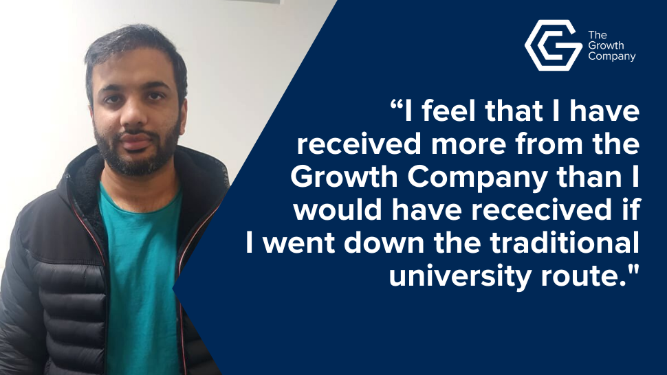 Muhammed recommends the Growth Company to others, stating that “It’s a great place to be at if you want to progress if you want to study and get the help and support. It’s definitely the place to go to.”