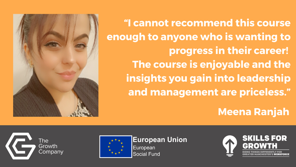 Meena Ranjah, Lead Employment Coach at the Growth Company, recently completed the Leadership Essentials for All course. The fully funded course gives learners valuable insight into a variety of people management workshops to develop the key knowledge and skills of the Staff Management profession.