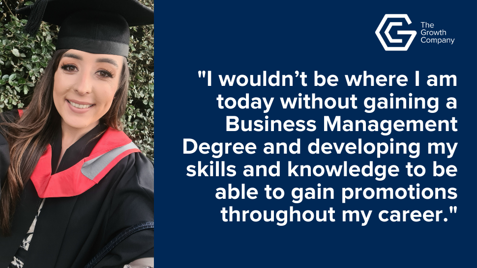 Now with a Degree in Business Management, Natasha is thankful for the opportunities she has been given. She said: “Thank you to the Growth Company for giving people of all ages the chance to learn, develop and improve their career progression no matter the circumstances. I wouldn’t be where I am today without gaining a Business Management Degree and developing my skills and knowledge to be able to gain promotions throughout my career.“
