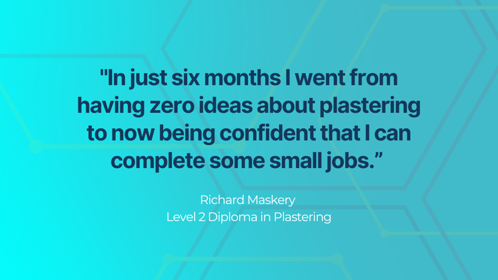 "In just six months I went from having zero ideas about plastering to now being confident that I can complete some small jobs.”