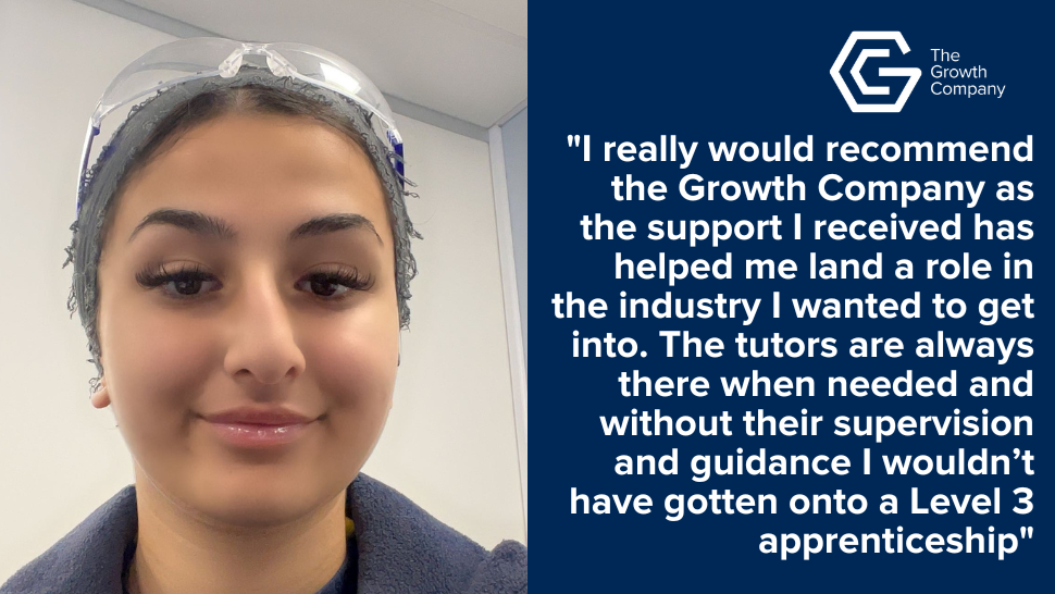I really would recommend the Growth Company as the support I received has helped me land a role in the industry I wanted to get into. The tutors are always there when needed and without their supervision and guidance, I wouldn’t have gotten onto a Level 3 apprenticeship.
