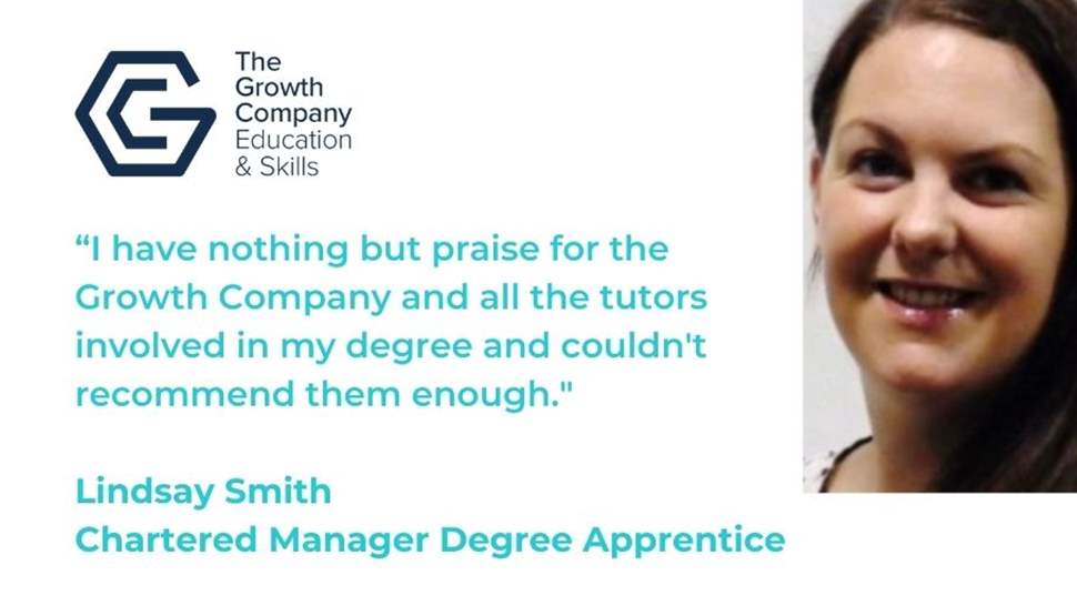 Lindsey said: “I have nothing but praise for the Growth Company and all the tutors involved in my degree and couldn't recommend them enough. I also have an incredibly supportive line manager and senior leadership team who will help in any way needed in my journey to completing my degree. This course has enhanced my leadership skills and helped me approach new tasks or projects strategically. The commitment and work involved within a Chartered Manager Degree Apprenticeship should not be underestimated. However, the support and guidance provided by the Growth Company is immense and does make you feel like you can achieve this even when you are facing your biggest challenges.”